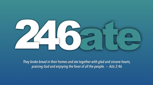 "246 ate" comes from the passage in Acts 2:46. We invite you to join a small group that you will commit to meeting and eating with at least three times over the next several months. Solely for the purpose to know each other better. Please sign up to enjoy this time of community. This is a time for fellowship, to share a meal, and get to know one another better.